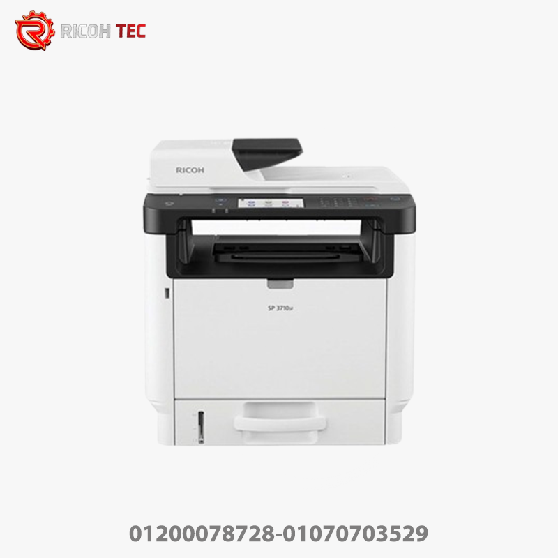 جهاز Ricoh 3710 Multifunction متعدد الوظائف أبيض وأسود، يجمع بين الطباعة والنسخ والمسح الضوئي في جهاز واحد موثوق وسريع للمكاتب والشركات